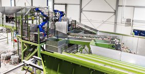 Mit der Unterstützung von sechs unserer Lieferanten wurde das Projekt realisiert. Diese lieferten die Roboter (zum Öffnen der Säcke, in denen das Pfandmaterial angeliefert wird), die Siebtechnik, den Lufttransport, die Magnete und die optische Erkennung.