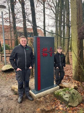 Das Besondere dabei: Tim und Elias haben das Design vollständig aus ihrer eigenen Vorstellungskraft entstehen lassen. Beschichtet wurde die Stele mit der KTL- und Pulverbeschichtung bei WOB in Geeste-Dalum.
